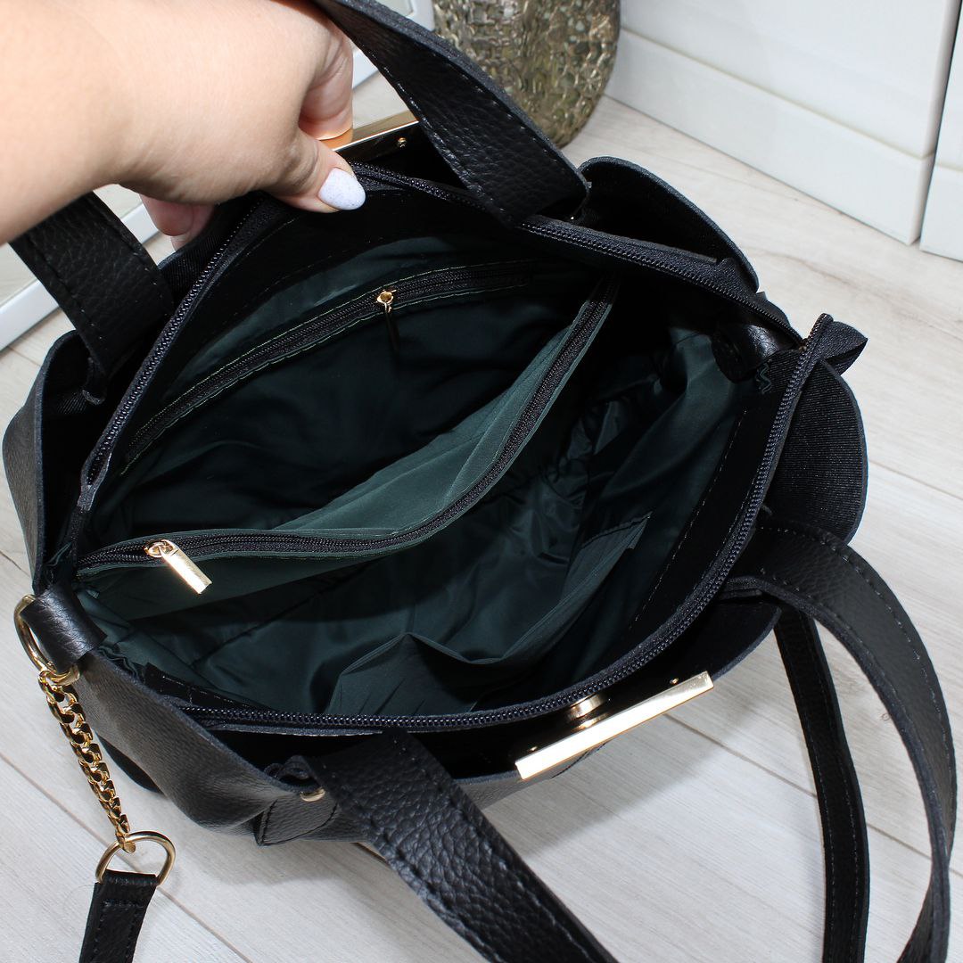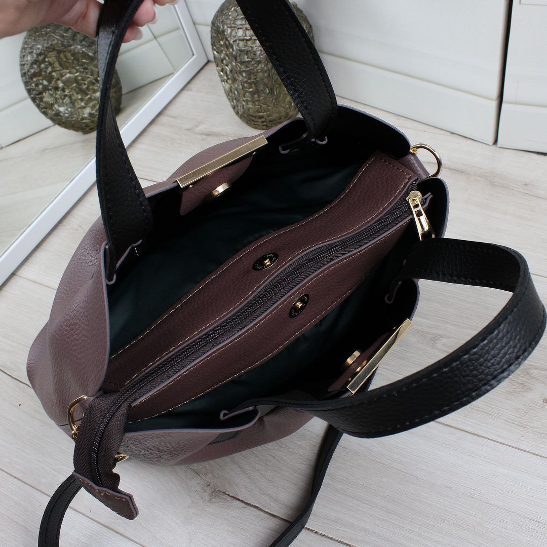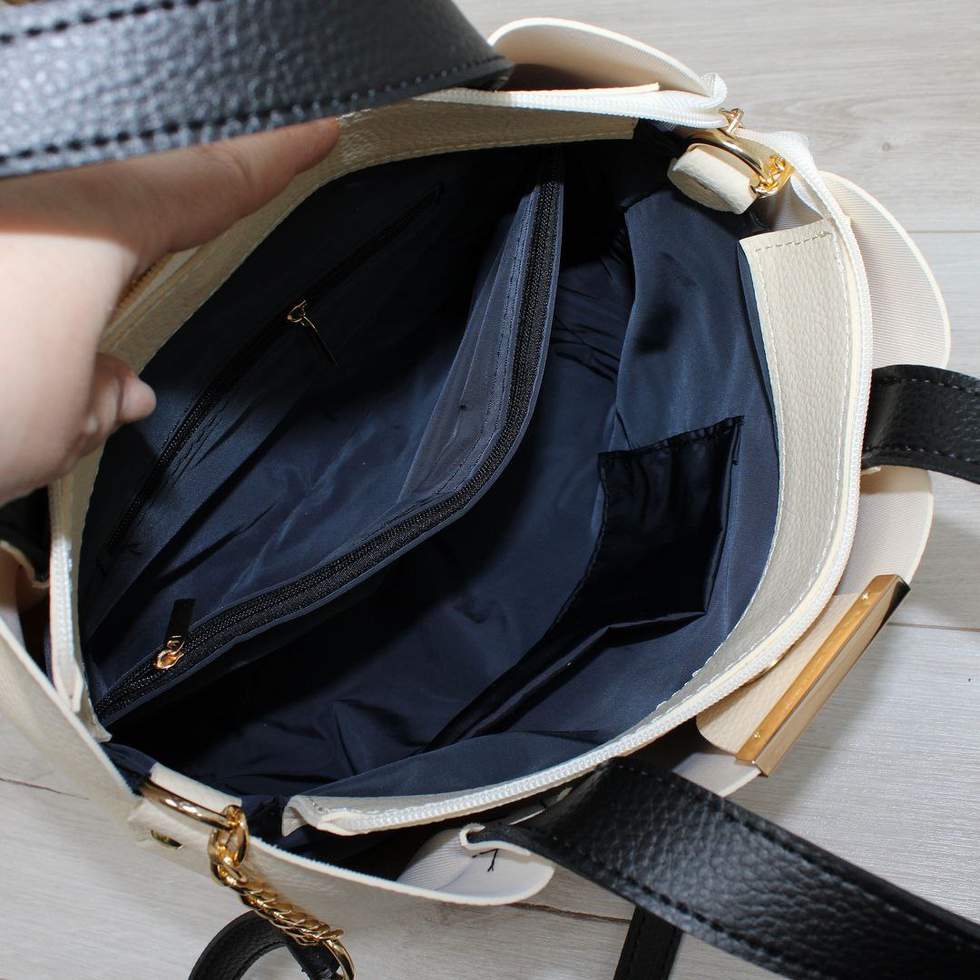 Сумка дуже порадувала дизайном та якістю виконання, усередині багато місця, всі речі влазять. Сумка виглядає якісно і на вигляд, і фурнітура відмінна. Приємна на дотик і для очей. Розмір ідеальний: не велика та не маленька. Рекомендую до покупки! -